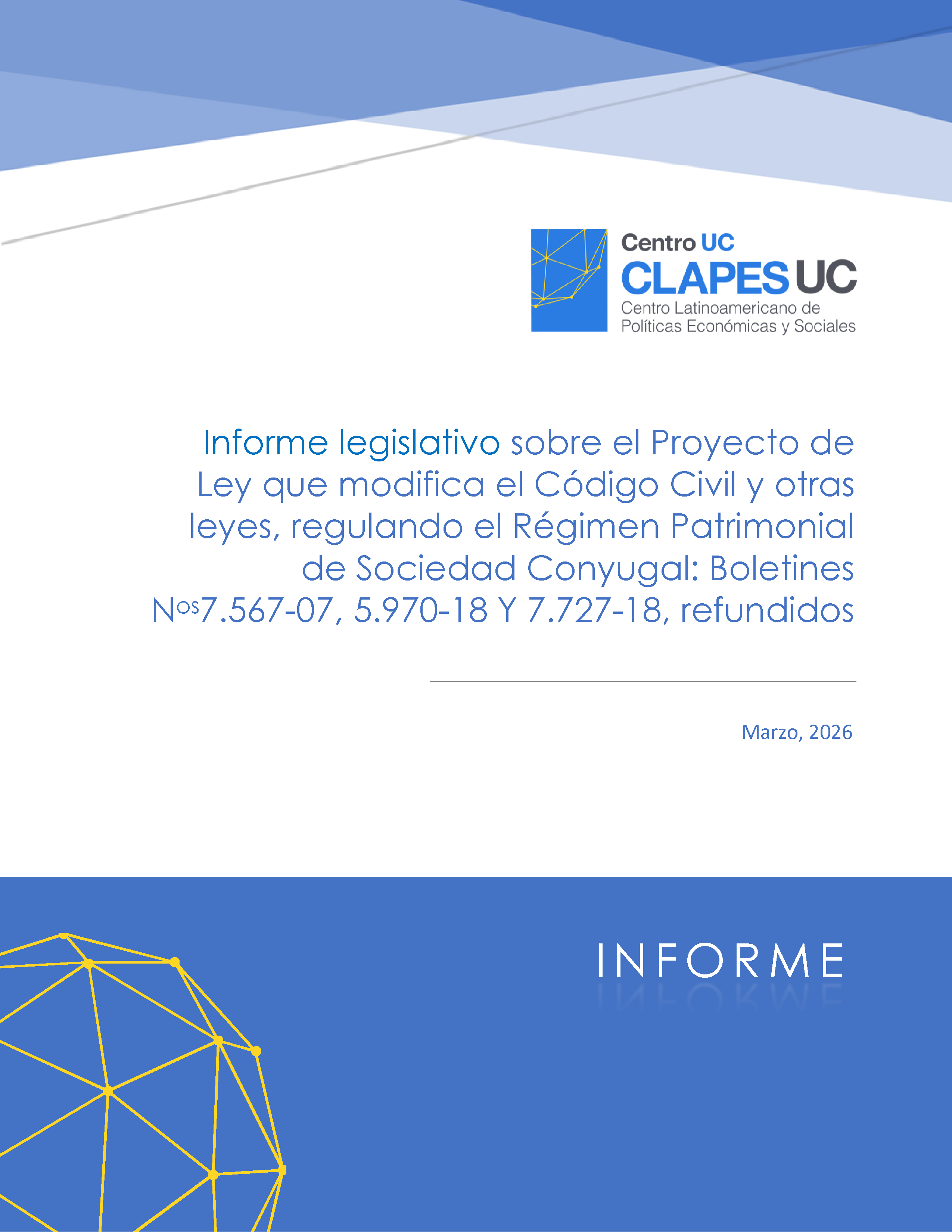 Informe legislativo sobre el Proyecto de Ley que modifica el Código Civil y otras leyes, regulando el Régimen Patrimonial de Sociedad Conyugal: Boletines Nos 7.567-07, 5.970-18 Y 7.727-18, refundidos