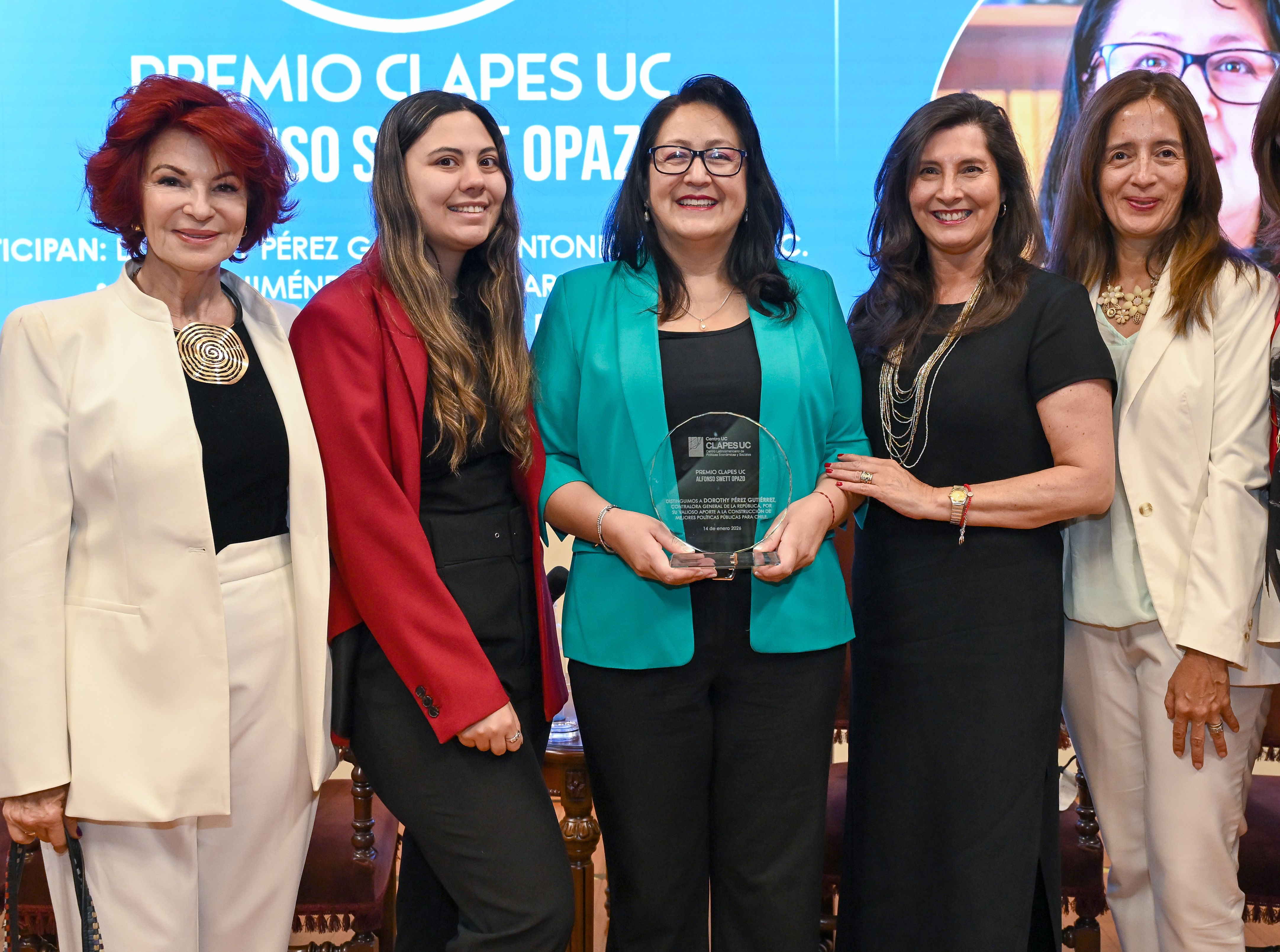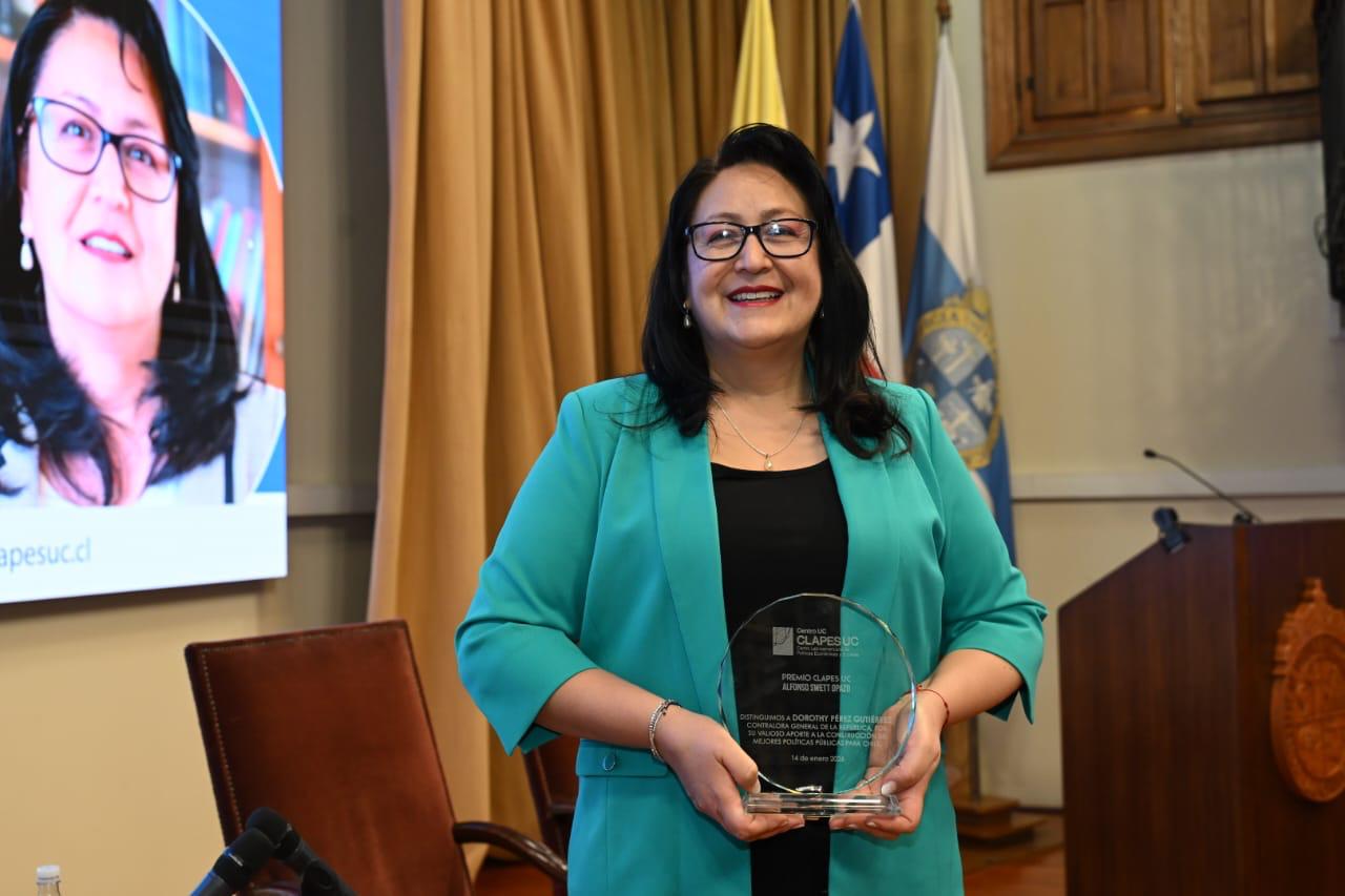 En su sexta edición, esta distinción —que a partir del año pasado rinde homenaje a la memoria y legado de Alfonso Swett Opazo — fue otorgada por decisión unánime del Comité Ejecutivo de CLAPES UC a la Contralora General de la República, Dorothy Pérez Gutiérrez , en reconocimiento a su destacada trayectoria y aporte a las políticas públicas.